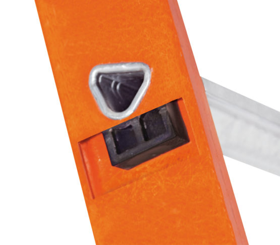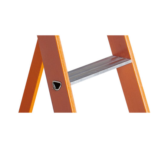 Klappleiter mit industrieller Plattform gebaut aus Glasfasersträngen und Aluminiumtrittstufen.