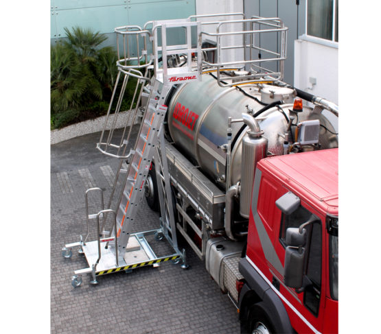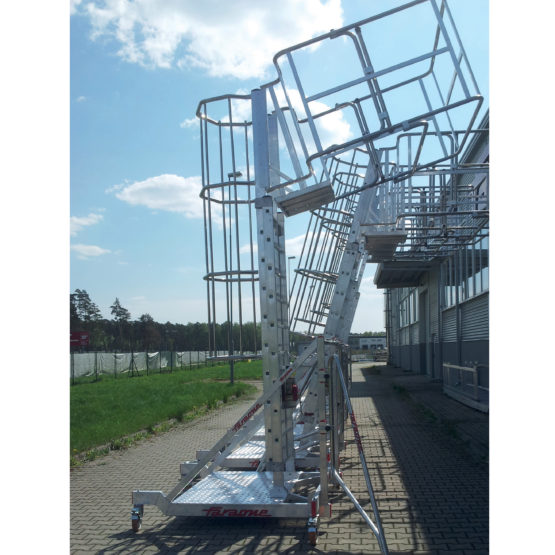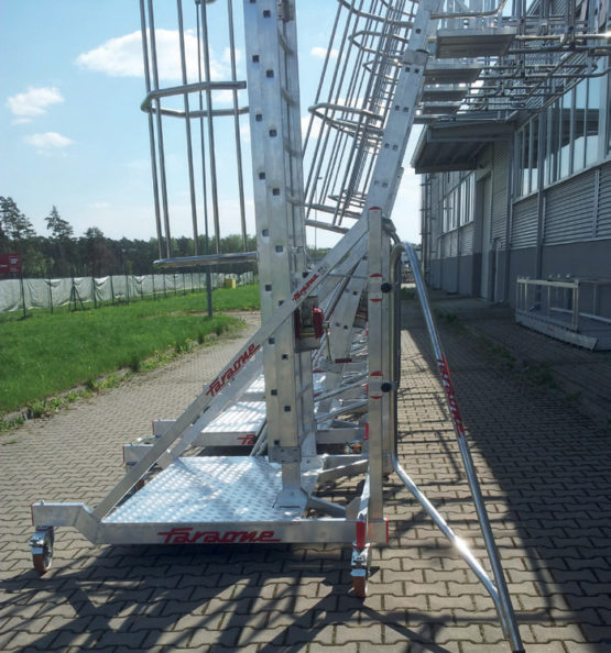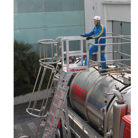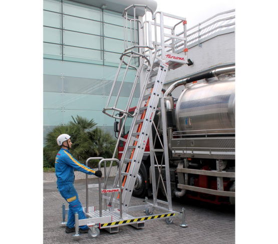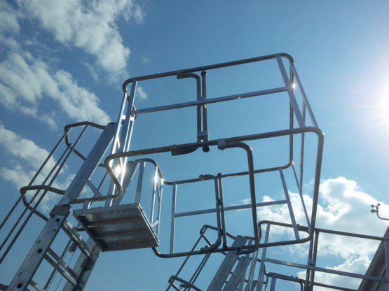 Die mobile Arbeitsbühne für die Wartung von Tankern mit Dachschutz.