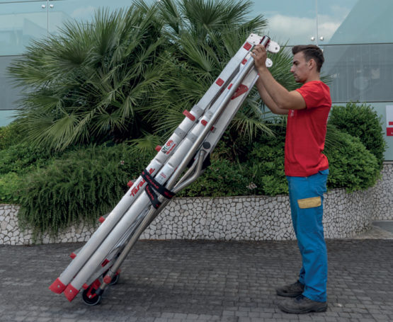 - SErgonomischer Sicherheitsgriff zum Einrasten und Freigeben sowie zum Verlängern der Aluminiumleiter.