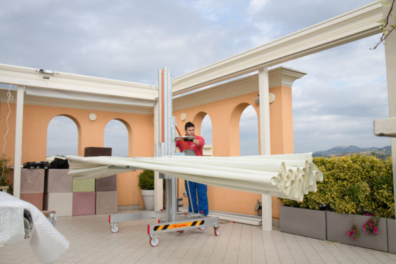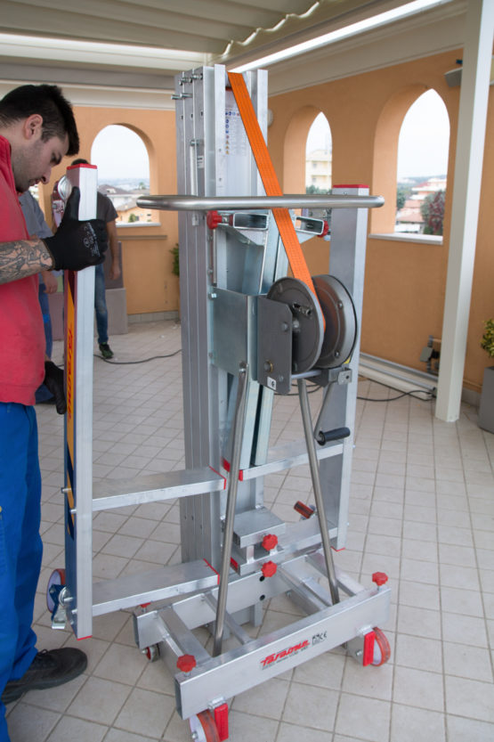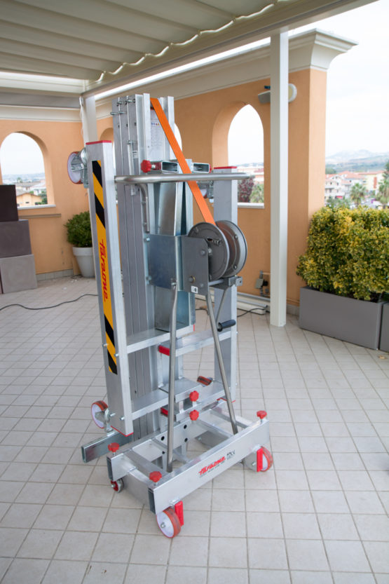 Material-Hebevorrichtung aus Aluminium mit einer max. Traglast von 250 kg.