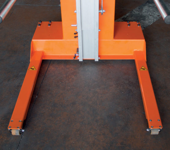 Kompakte Materialhebevorrichtung mit Stahlsockel, max. Tragkraft 200 kg.