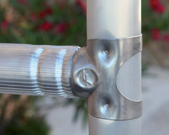 • Die Streben und Schutzgeländer mit Klickeinrastung einfach zu montieren und auszuhängen.