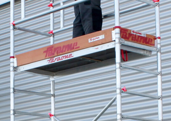 Die Plattformen aus rutschfestem Holz und die Verwendung der Klappen sind ein Sicherheits-Muß bei Arbeiten in der Höhe.